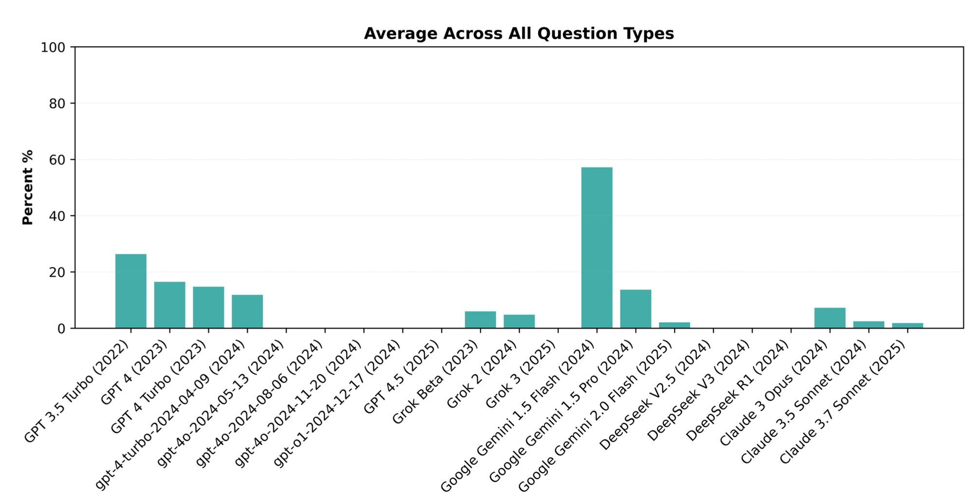 For other question types, the distributions were more even, which is reflected in the averages: