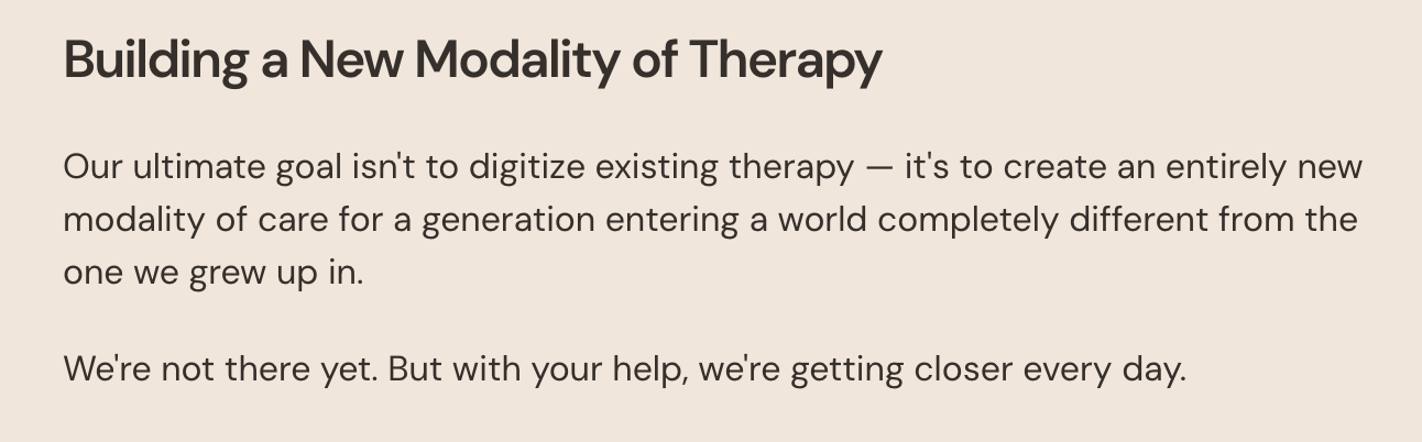 When launching any mental health product, promoting efficacy is an obvious marketing lever to pull. If that is the strongest claim they were able to produce, I would be highly suspicious of the effectiveness of Ash. Ash has been tested with 50,000 users over the last few months already.