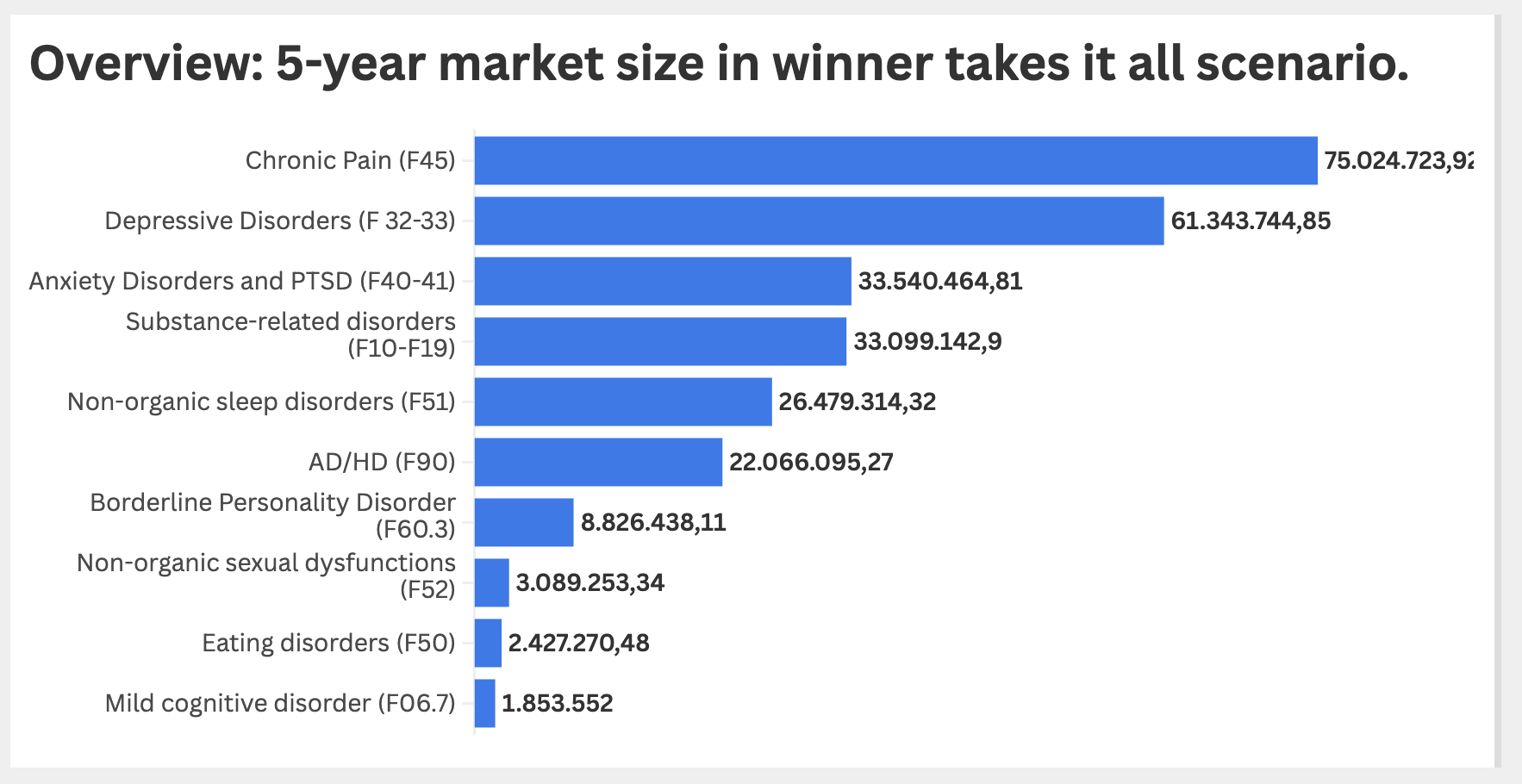 - What share of all indications for mental disorders are even viable as markets for DiGAs?